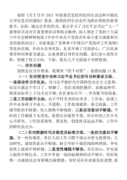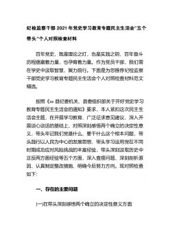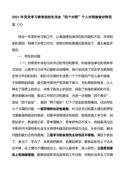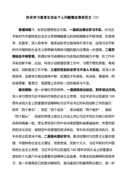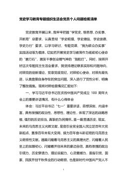 ·1党史学习教育专题组织生活会党员个人问题检视清单党史教育开展以来,我牢牢把握“学党史、悟思想、办实事、开新局”总要求,认真贯彻“学史明理、学史增信、学史崇德、学史力行”要求,以学习研讨、专题党课、“我为群众办实事”实践活动等为载体,切实把开展党史学习教育作为砥砺初心使命的“磨刀石”,激发干事创业精气神的“指航灯”。同时,按照开好这次专题民主生活会要求,我坚持理论联系实际和问题导向,对照党的创新理论,党章党规党纪,对照初心使命,对照先辈先进,认真查摆自身存在的突出问题,深入进行了党性分析,明确了整改措施。现将对照检查情况汇报如下:一、学习习近平总书记在庆祝中国共产党成立100周年大会上的重要讲...