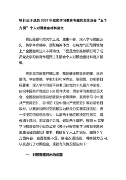 党员2021年党史学习教育专题组织生活会个人问题检视清单