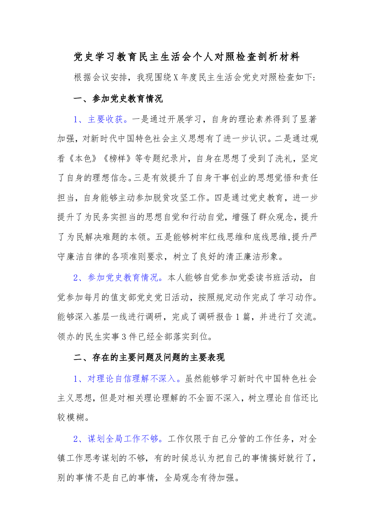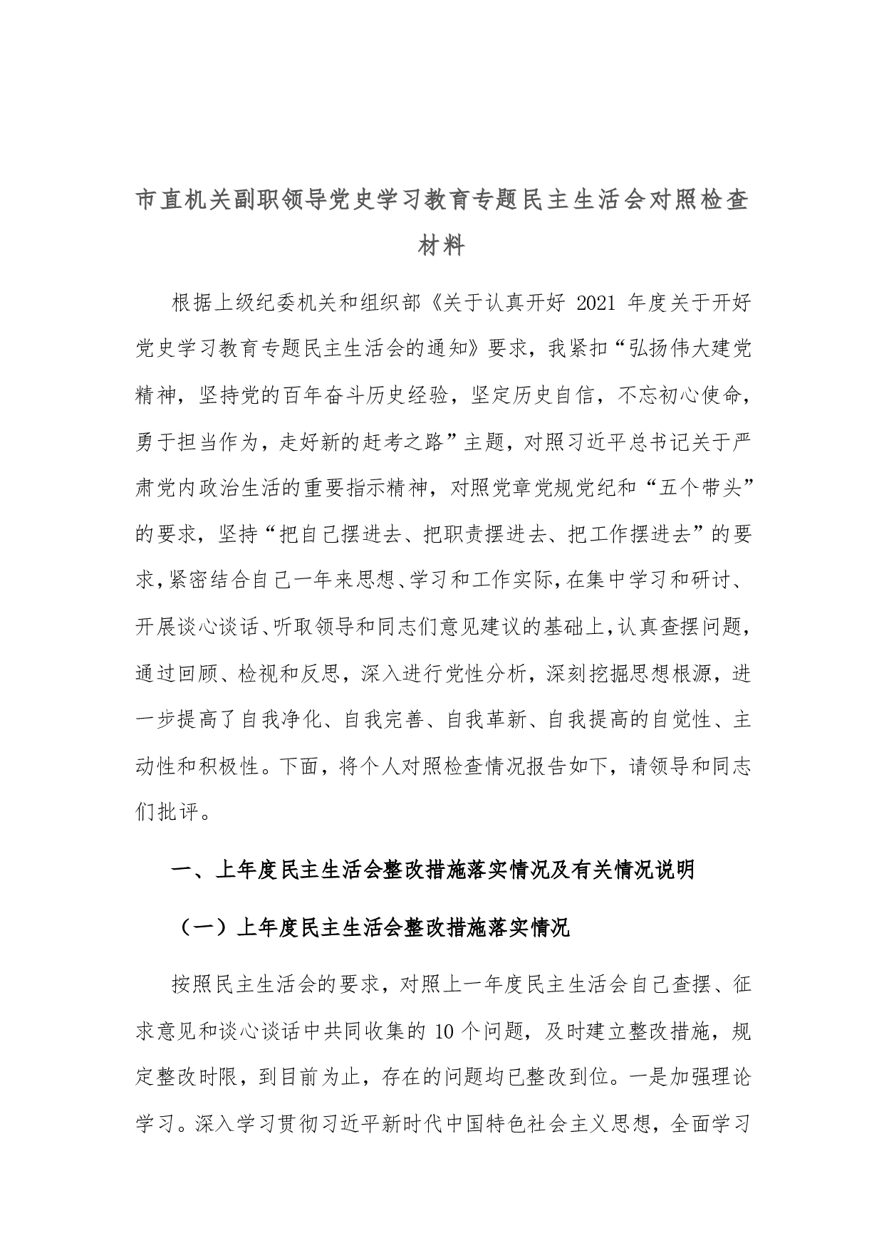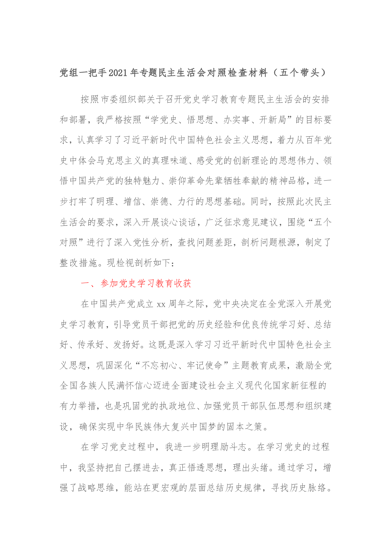 县政府办领导班子党史学习教育专题民主生活会剖析材料
