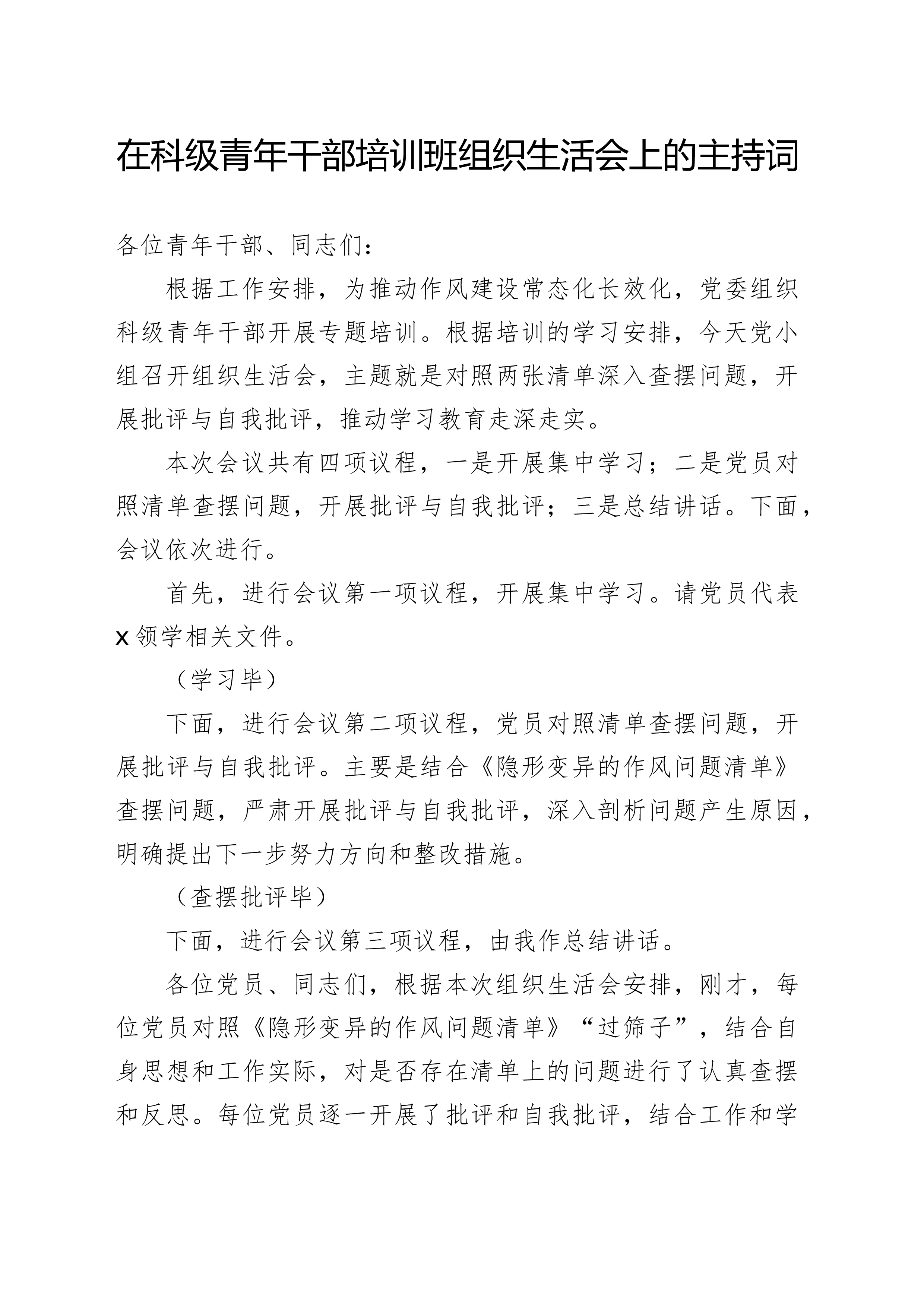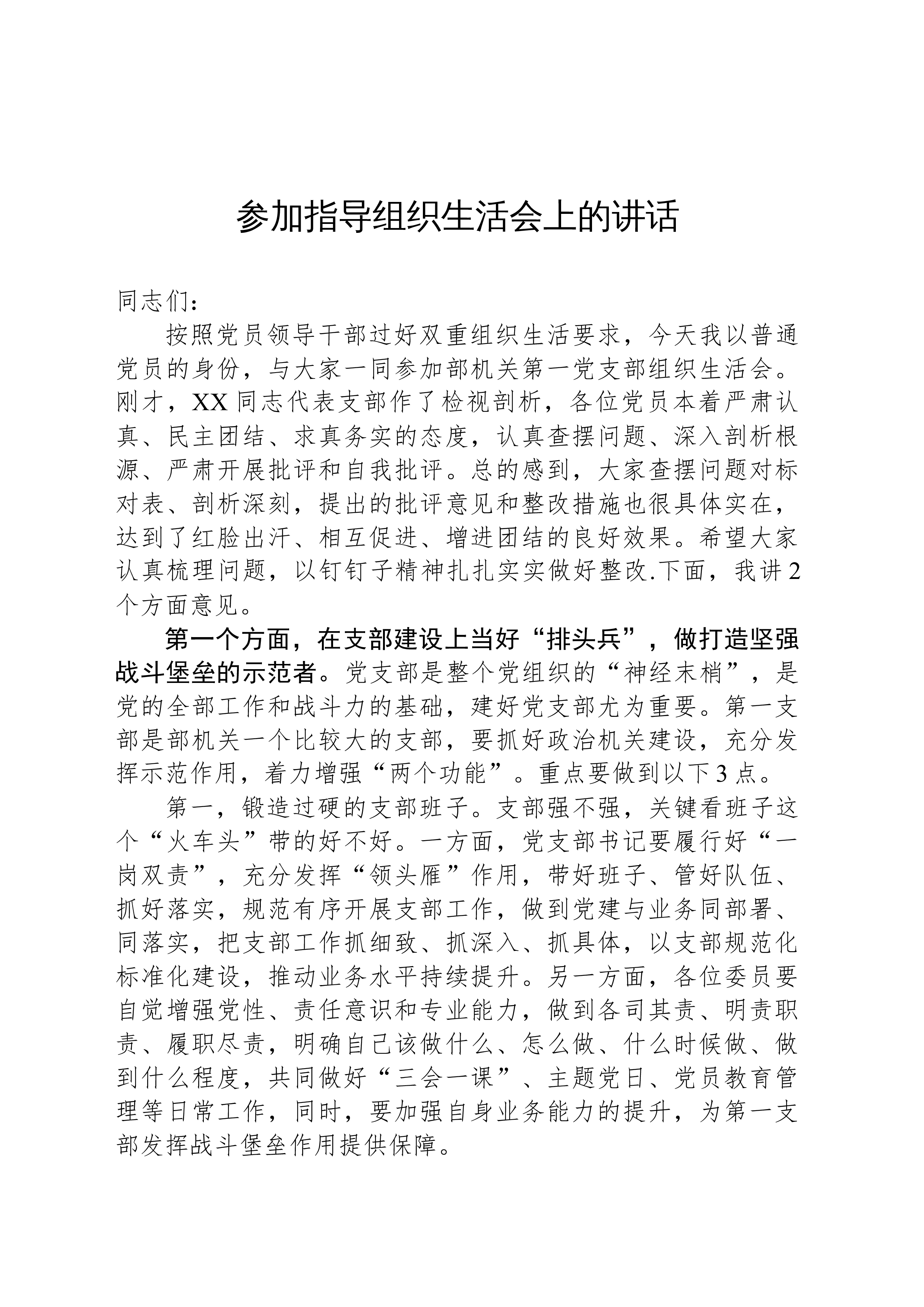 绍了召开专题组织生活会的经验做法,讲的都非常好。听了以