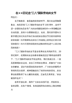 ──XX 市(县、区)妇联党组书记、主席 XX 在庆祝“三八”国际劳动妇女节 109 周年暨表彰