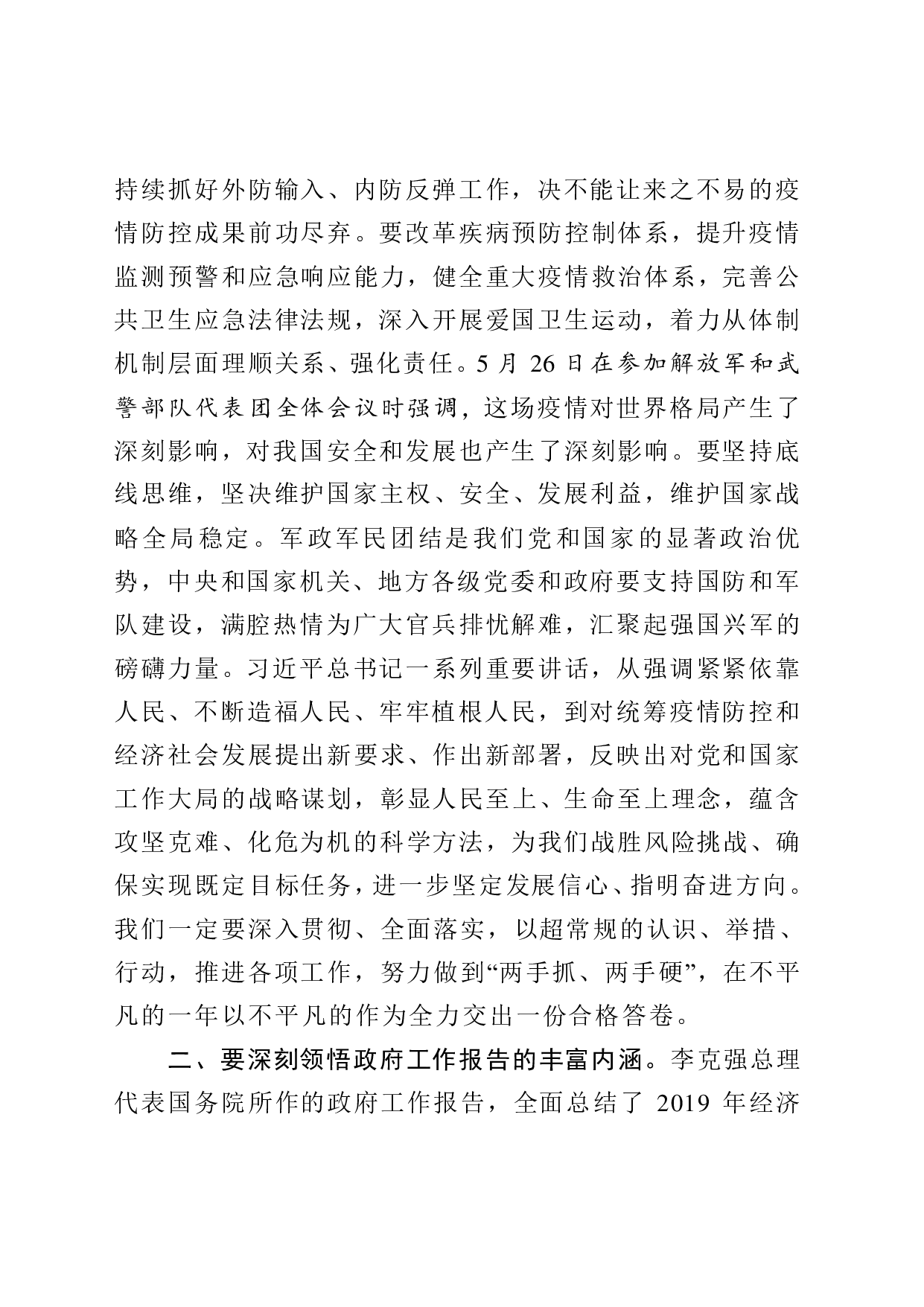 学习贯彻两会精神中心组学习讲话