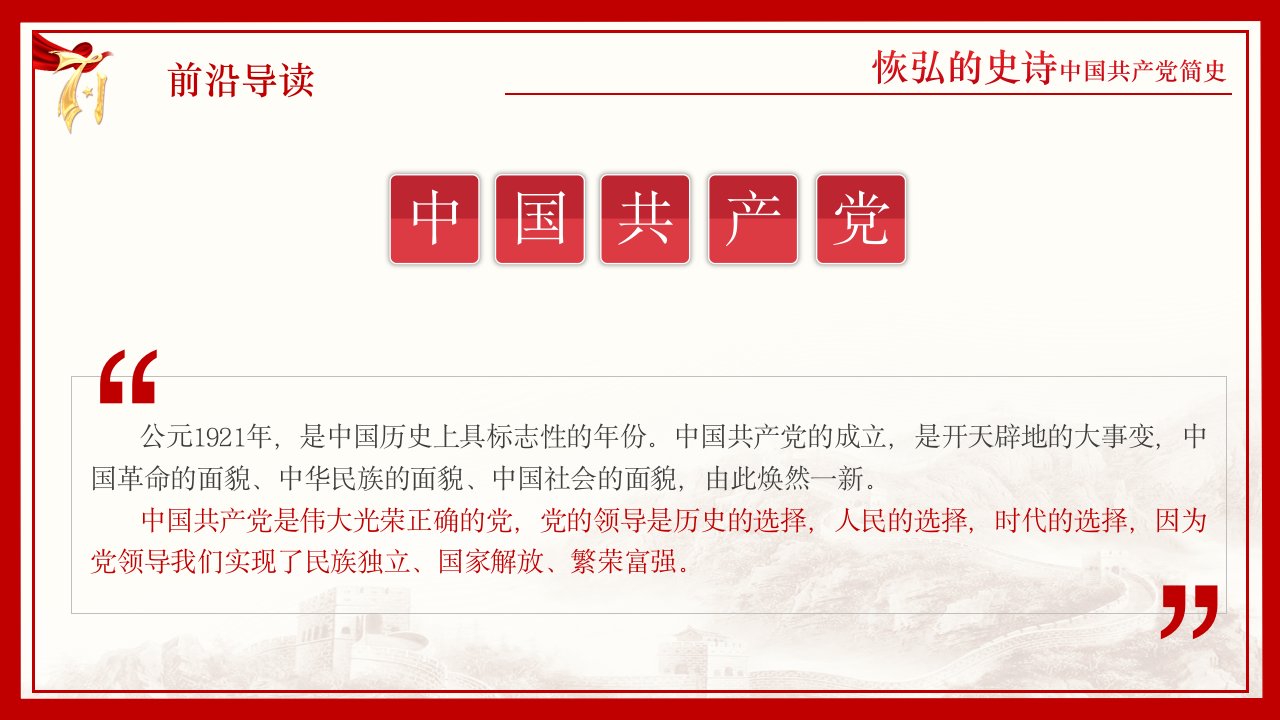 恢弘的史诗中国共产党简史党课PPT(20210301)