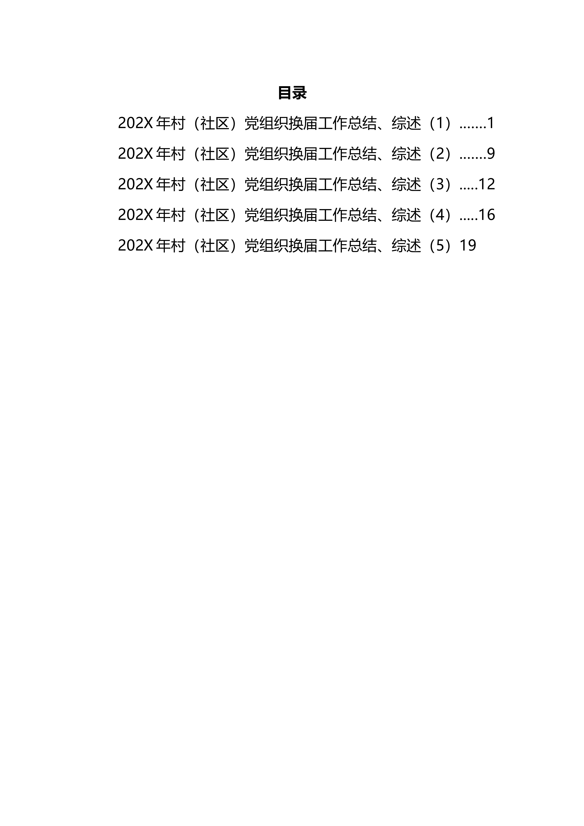 目录202X年村(社区)党组织换届工作总结、综述(1).......1202X年村(社区)党组织换届工作总结、综述(2).......9202X年村(社区)党组织换届工作总结、综述(3).....12202X年村(社区)党组织换届工作总结、综述(4).....16202X年村(社区)党组织换届工作总结、综述(5)19202X年村(社区)党组织换届工作总结、综述(1)202X年是村(社区)“两委”任期x年改x年后的首次换届。全州村(社区)“两委”换届工作自xxxx年xx月动员部署以来,经过x年的紧张筹备和近x个月的扎实推进,全州xxxx个村(社区)党组织换届于xx月xx日圆满结束,一次选举成功率...