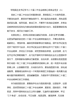 学院团总支书记学习二十届二中全会精神心得体会范文(1)党的二十届二中全会已经圆满结束,贯彻落实二十大指导思想,不断深化改革,要坚持不懈加强学习,努力提高自身素质,用先进思想武装头脑、指导实践、推动工作,不断学习各项会议精神,并将会议精神切切实实转化为推动高质量发展的强大动力。就是要脚踏实地敢于担当,竭尽全力做好工作。在新征程上,坚持以党的政治建设为统领,永葆“赶考”的清醒,以更加昂扬的姿态把二十届二中全会精神发扬光大,不断自我革命、砥砺初心、增强本领,确保党和国家事业行稳致远。团中央书记处也召开了相关学习会议,本次书记处会议主要传达学习了党的二十届二中全会精神,并结合工作实际,研究贯彻落实举措...
