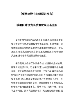【项目建设中心组研讨发言】以项目建设为高质量发展夯基垒台