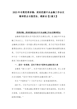 2023年专题党课讲稿:深刻把握中央金融工作会议精神要点与强党性、建新功【2篇文】
