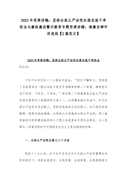 2023年专题党课讲稿:深刻把握中央金融工作会议精神要点与强党性、建新功【2篇文】党课讲稿:深刻把握2023年中央金融工作会议精神要点金融高质量发展关系中国式现代化建设全局。在2023年中央金融工作会议上,习近平总书记在会上发表的重要讲话,科学回答了金融事业发展的一系列重大理论和实践问题,是习近平经济思想的重要组成部分,是马克思主义政治经济学关于金融问题的重要创新成果,习近平总书记从党和国家事业发展全局的战略高度,部署当前和今后一个时期的金融工作,为新时代新征程推动金融高质量发展提供了根本遵循和行动指南。一、坚定一条道路:坚定不移走中国特色金融发展之路金融是“国之大者”,关系中国式现代化建设全...