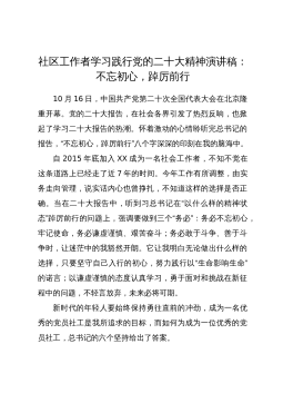 防疫志愿者“喜迎二十大·建功新时代”主题演讲稿尊敬的各位领导、同事们:大家好!我叫X,很荣幸能够站在这里为大家带来我的演讲,今天我演讲的题目是《不忘初心跟党走立足岗位见行动》。不忘初心跟党走。为什么我们要跟着共产党走?这是因为共产党员的初心是为中国人民谋幸福,为中华民族谋复兴。同时在党的十九届六中全会也全面总结党的百年奋斗重大成就和历史经验,回顾中国共产党的百年奋斗重大成就和历史经验,我深刻感受到中国共产党是多么伟大,我为我们的党感到骄傲,我为我们的祖国有这样一个党而感到自豪!所以我们要跟着党走。立足岗位见行动。在工作中,有很多人,立足自己的岗位作出实际行动,默默无私地奉献着。有的因为专心工作...
