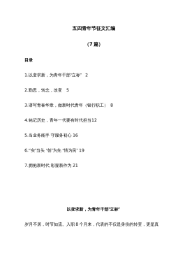 2023年五四专题秘书文稿汇编(29篇)目录1.@年轻干部打卡“时代青年观”.............................32.@时代新青年以“五四精神”蕴养“三心”.................63.@五四青年若时代有托吾以青春献华年...............94.@五四青年时代大有为青年当有“爱”.................135.@五四青年:为中国式现代化注入“青春动能”.....166.@新时代青年青春年华当“乘势而上”.................197.@选调青年牢记殷殷嘱托做新时代的奋进者.......228.“跨越时空”与革命先辈来一场“青春对话”...