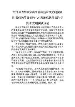 2023年XX区穿山南社区新时代文明实践站“我们的节日·端午”之“风雅粽飘香+端午倡廉洁”文明实践活动(20230616)
