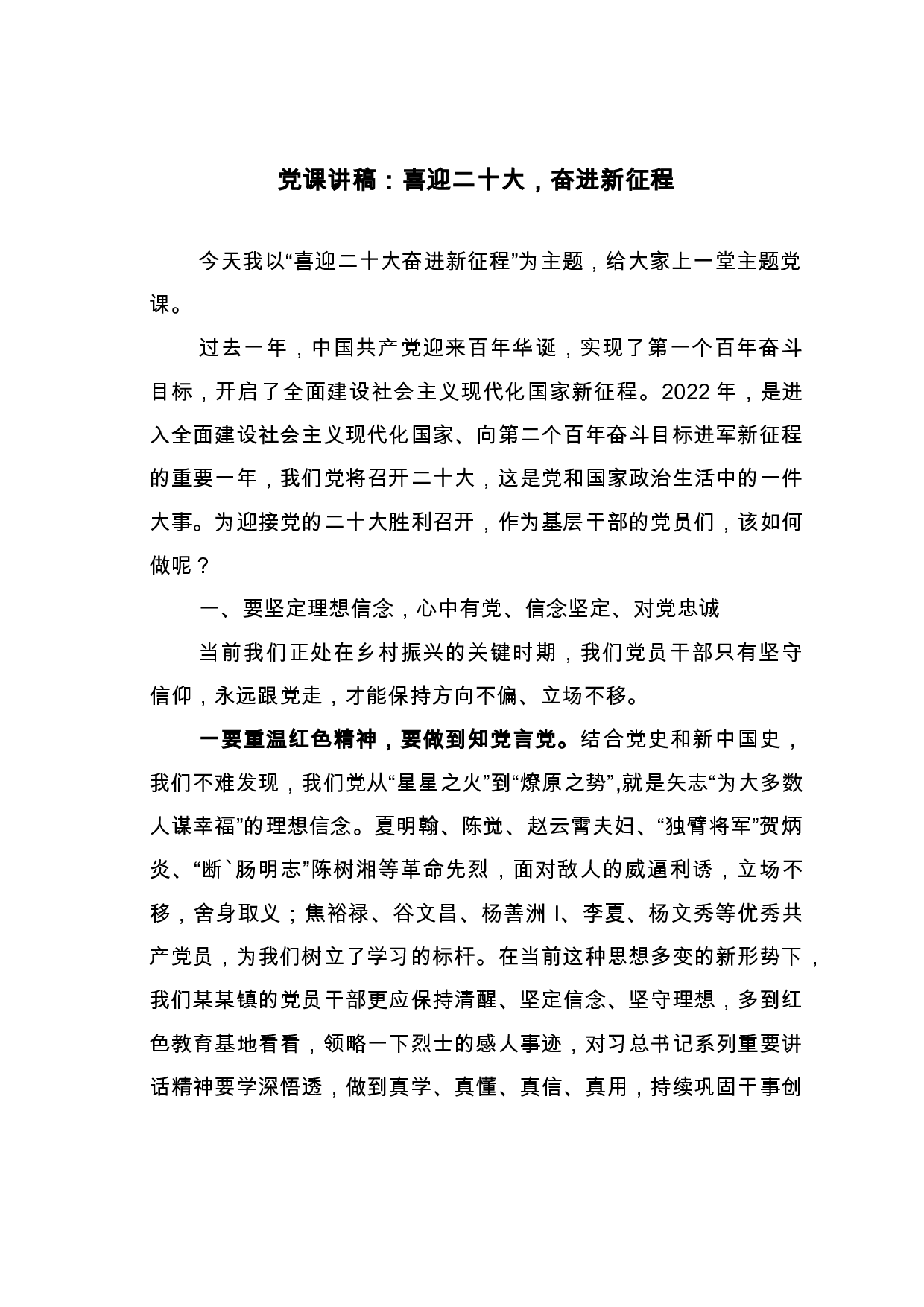 主题党日党课讲稿:坚持中国特色社会主义文化道路建设社会主义文化强国一、中国特色社会主义文化建设的重要性党的十九大报告指出:“文化是一个国家、一个民族的灵魂。文化兴国运兴,文化强民族强。没有高度的文化自信,没有文化的繁荣兴盛,就没有中华民族伟大复兴。”中华民族五千多年的历史有这样一个特点,王朝的强大与文化的兴盛紧密相连。比如,汉代和唐代。汉代的经济、军事、政治实力非常强盛,文化成果也多。司马迁的《史记》就是在西汉时期出现的。唐朝是文化高度繁荣的时代,诗词、书法、绘画、音乐等方面均有佳作流传于世。中国特色社会主义文化是一个什么样的概念?党的十九大报告是这样定义的:“中国特色社会主义文化,源自于中华...