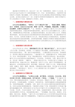 做好秘书日常管理工作,是办公厅(室)的一项重要职责。党的十八大以来,以XJP同志为总书记的D中Y高度重视秘书工作,作出一系列重要指示,为新形势下做好秘书工作提供了根本遵循。在学习贯彻XJP总书记重要指示和相关管理规定中我们认识到,必须充分发挥办公厅(室)在秘书日常管理中的职能作用,教育引导秘书工作人员处理好六个关系,确保秘书工作到位、高效。 一、处理好事业与事务的关系 XJP总书记强调指出:“要牢记‘天下大事必作于细’、‘慎易以避难,敬细以远大’的道理,无论办文办会办事,都要一丝不苟、严谨细致、精益求精,于细微之处见精神,在细节之间显水平。”这一重要指示,深刻揭示了秘书工作人员应有的作风素养和...
