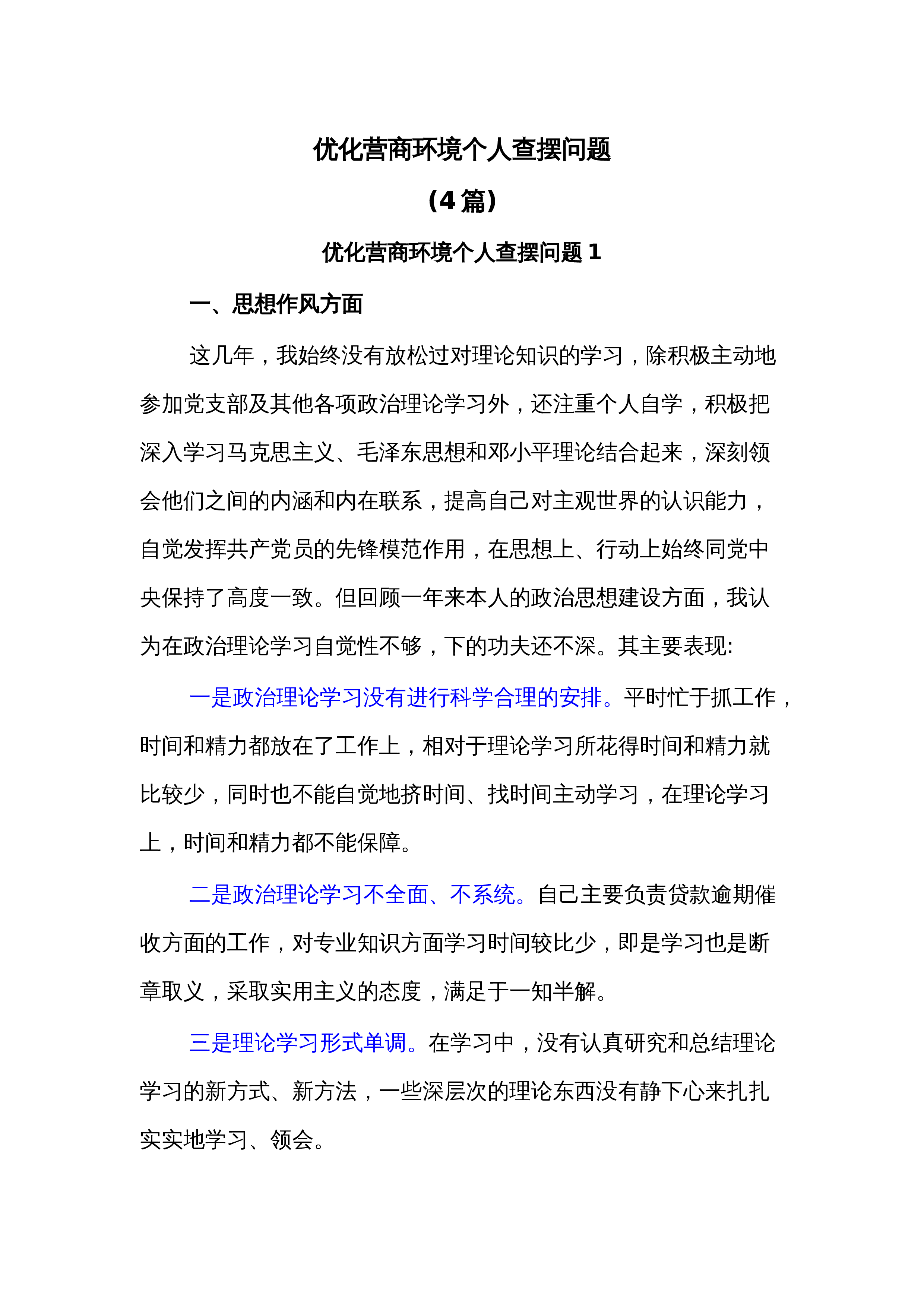 (4篇)优化营商环境个人查摆问题