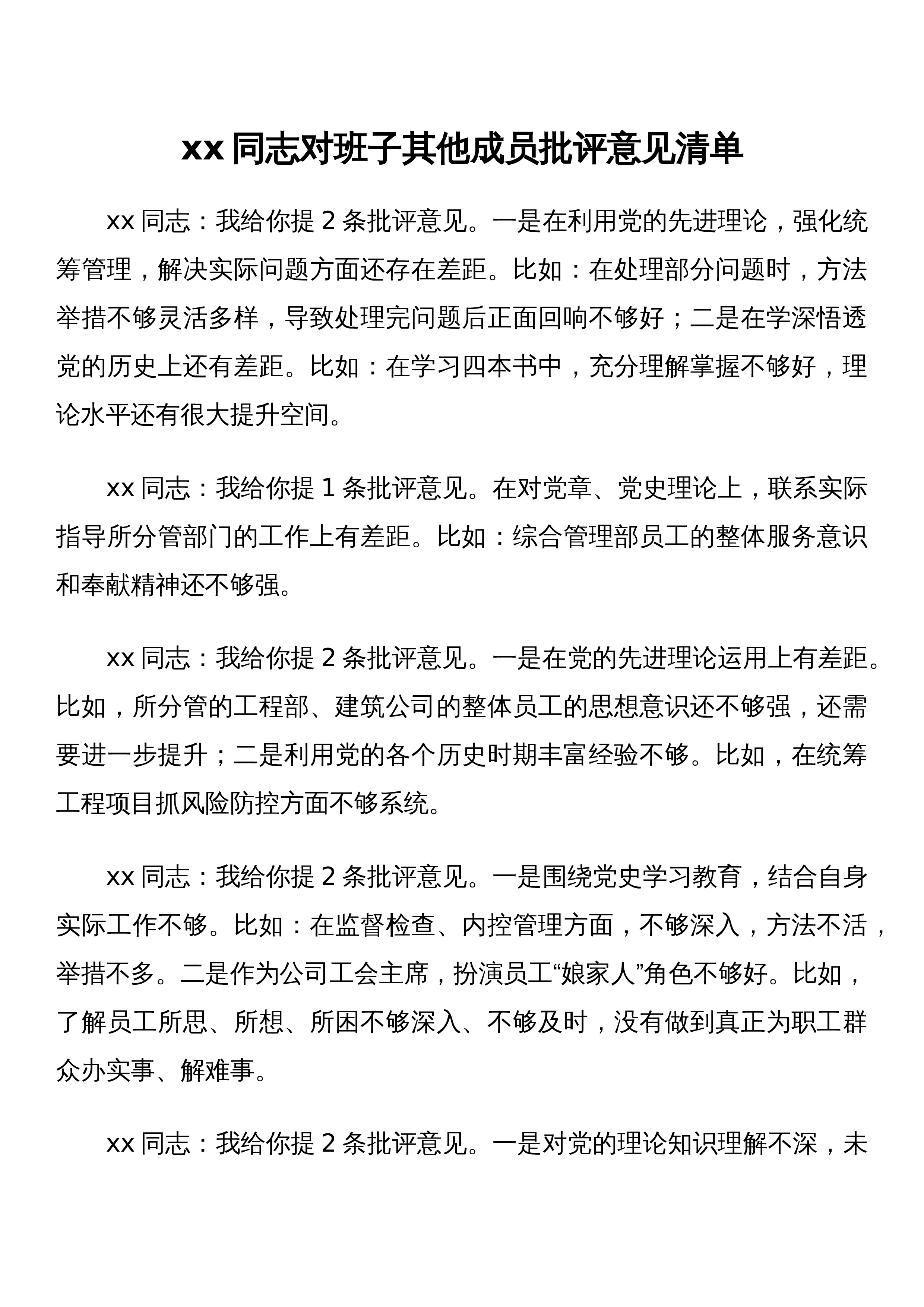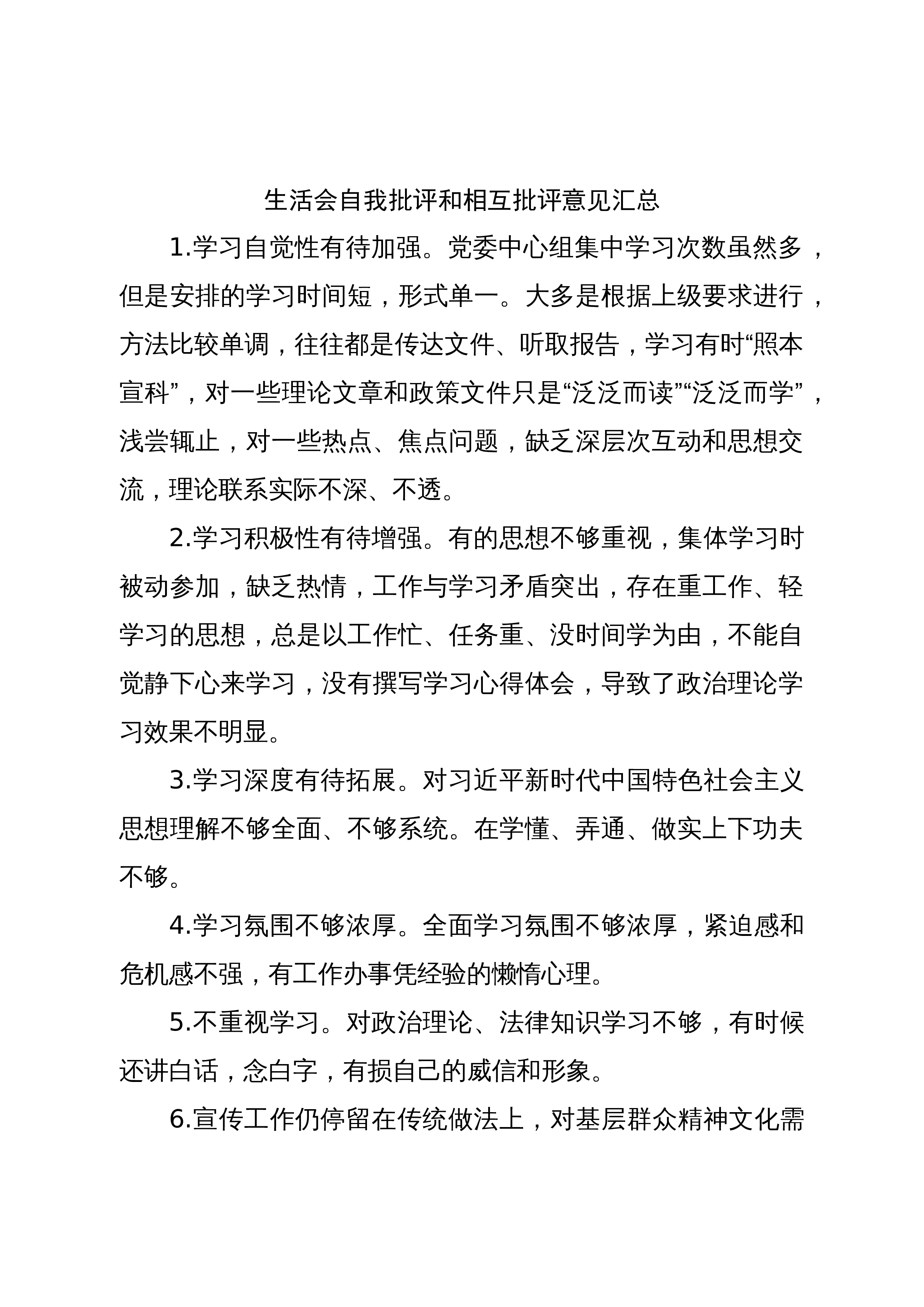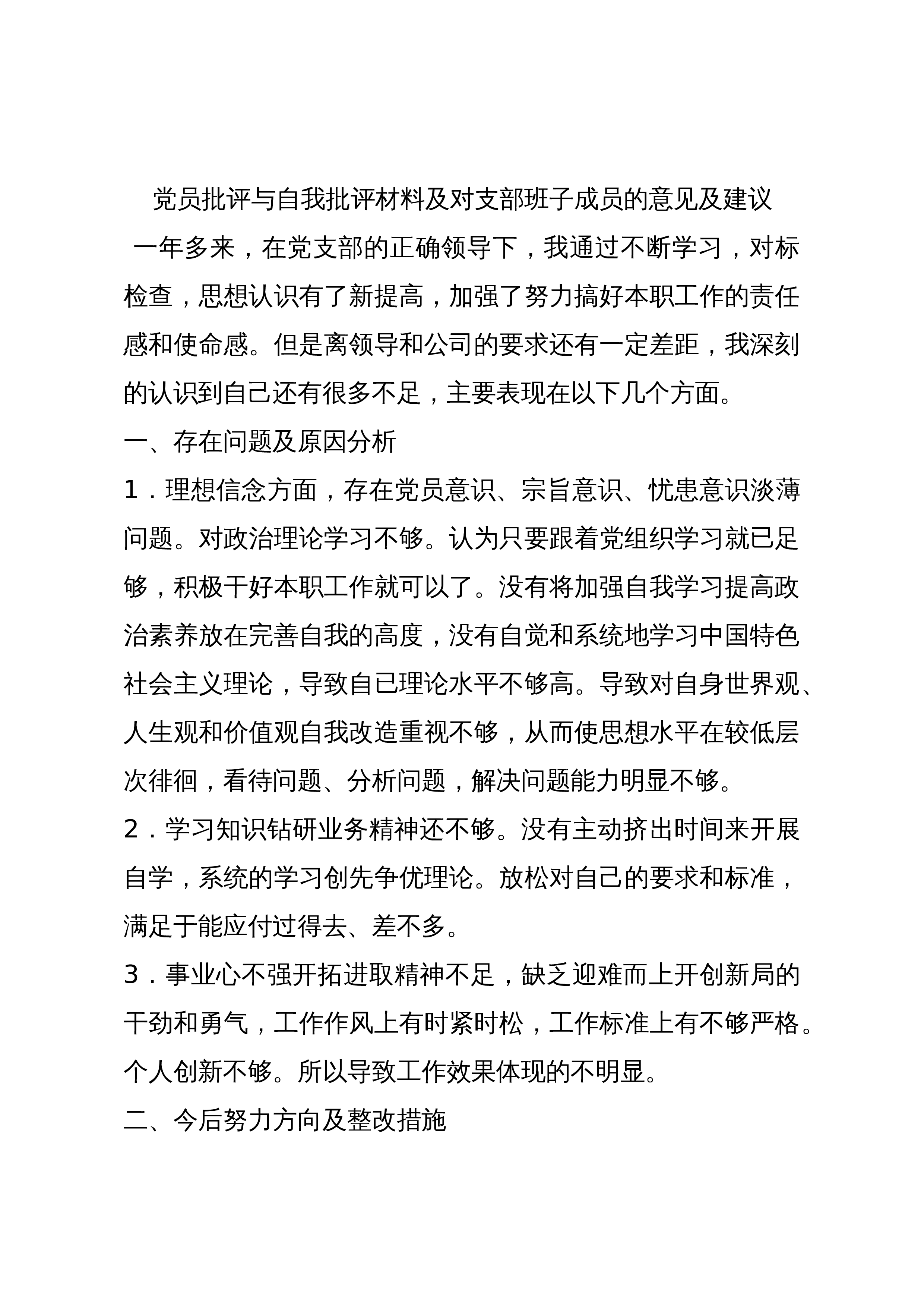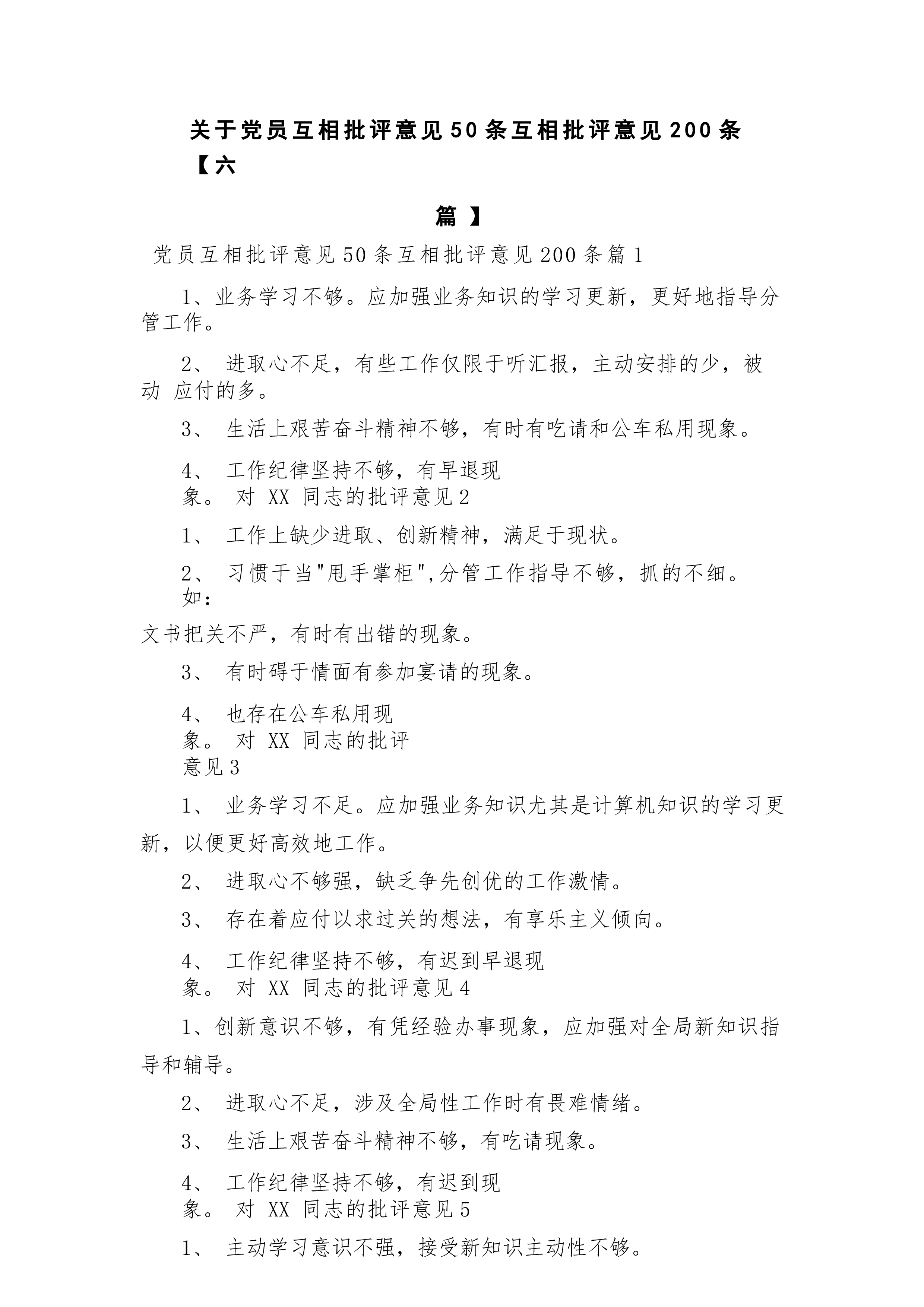 关于党员互相批评意见50条 互相批评意见200条【六篇】