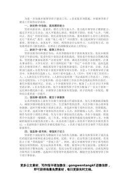 为进一步加强乡镇领导班子建设工作,x县采取多项措施,乡镇领导班子建设工作取得良好成效。一、扬优势+补短板,提高履职能力坚持从抓培训、提素质、增合力等方面入手,着力提升领导班子履职能力。通过召开民主生活会,深入开展谈心谈话,增进班子团结,形成“心齐、气顺、风正、劲足”的良好局面。依托县委党校主阵地,强本着缺什么补什么的原则,实行“菜单式”教学,采取“线上+线下”共同教学,着力提高领导干部的政治素质、领导能力、业务水平。同时,利用理论中心组学习、大讲堂等方式,切实将理论学习抓实抓好,以理论上的清醒保证政治上的坚定。二、新班子+老干部,凝聚工作合力坚持实践导向和基层导向,从培养锻炼年轻干部的角度出发...
