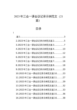2023年三会一课会议记录示例范文(21篇)目录1.篇1..................................................................32.2023年三会一课会议记录示例范文篇2..............53.2023年三会一课会议记录示例范文篇3..............74.2023年三会一课会议记录示例范文篇4............105.2023年三会一课会议记录示例范文篇5............126.2023年三会一课会议记录示例范文篇6............147.2023年三会一课会议记录示例范文篇7..........