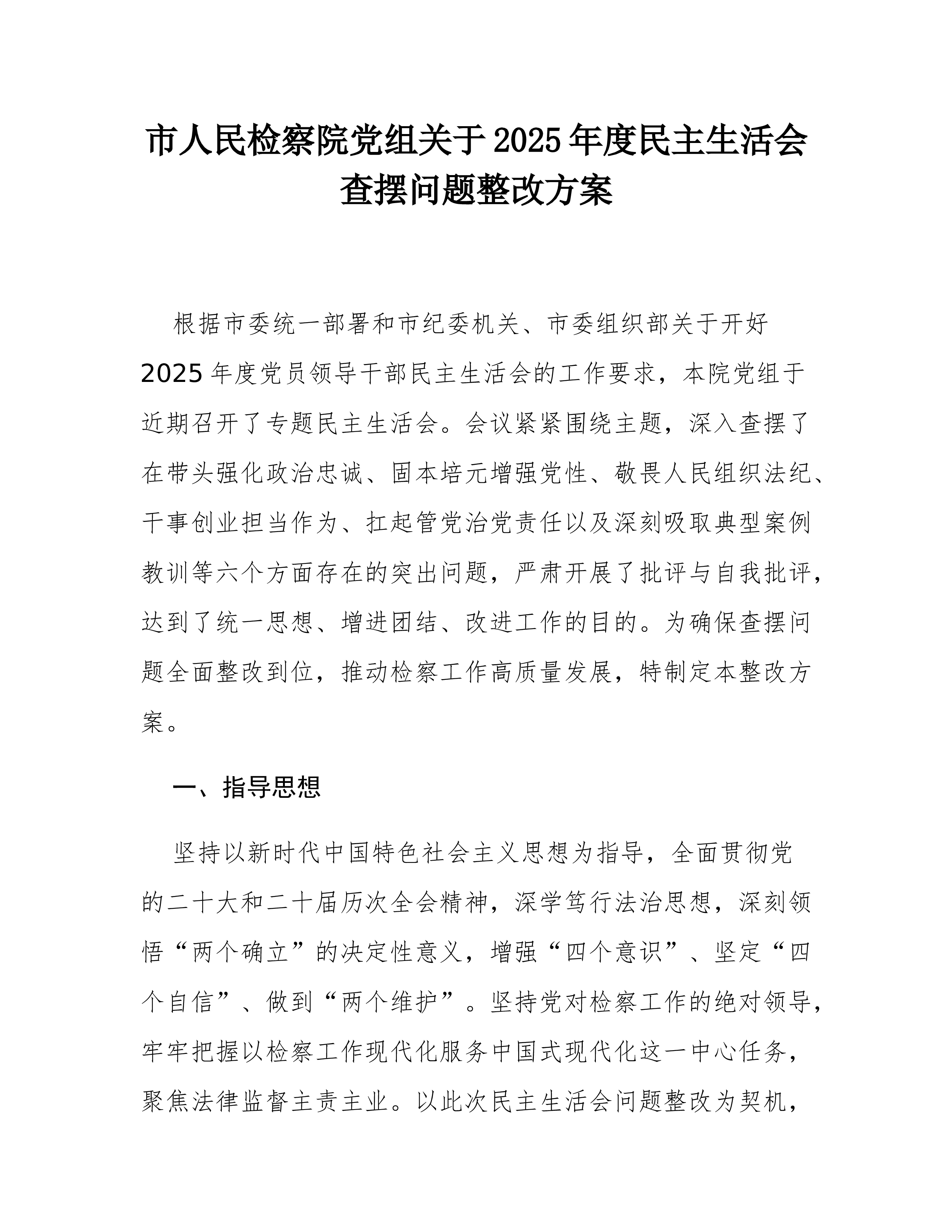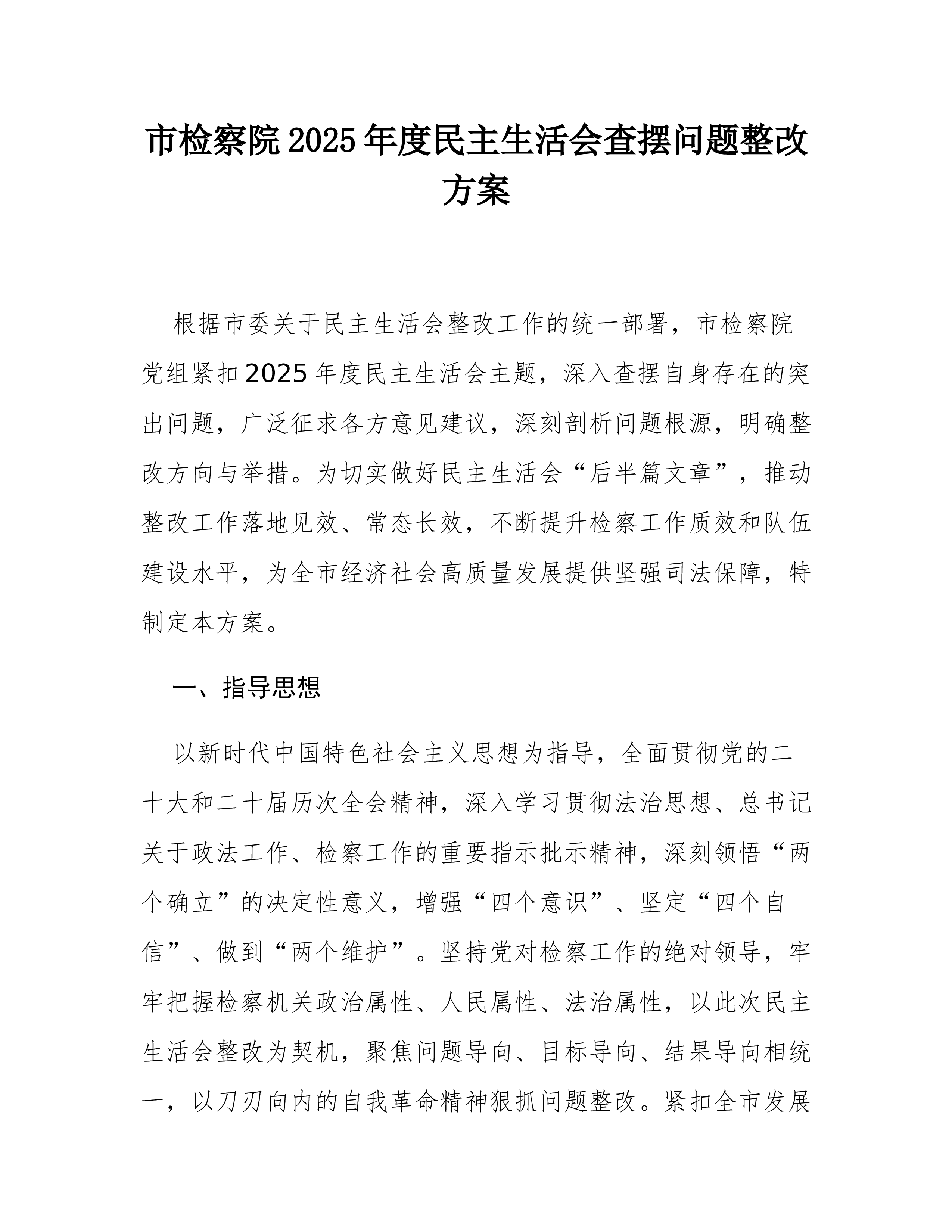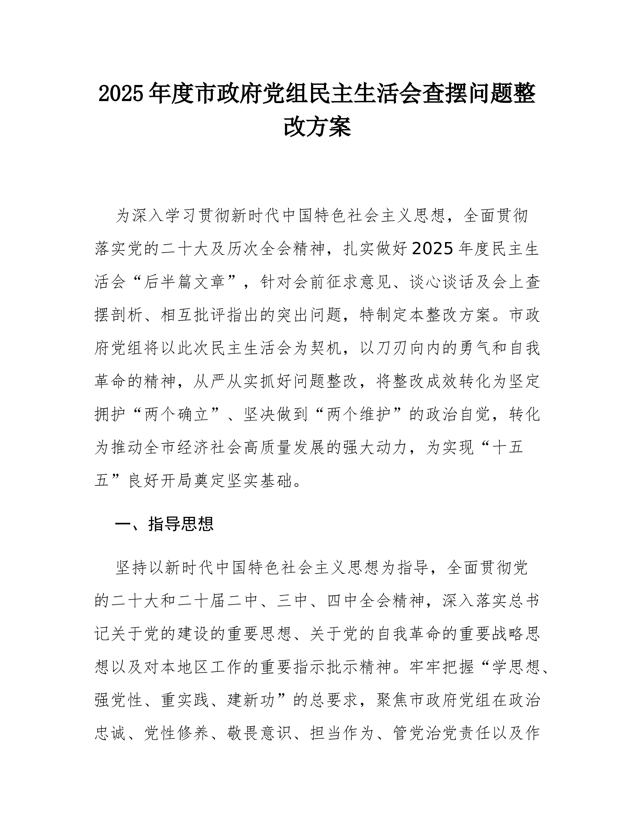 2025年度市委办公室民主生活会查摆问题整改方案根据市纪委机关、市委组织部关于开好2025年度党员领导干部民主生活会的统一部署要求,市委办公室班子于*月*日召开了专题民主生活会。会议紧扣主题,深入查摆了在强化政治忠诚、增强党性修养、恪守敬畏之心、激励担当作为、扛牢治党责任以及汲取典型案例教训等方面存在的突出问题,深刻剖析了问题根源,认真开展了批评与自我批评。为切实抓好查摆问题的整改落实,确保民主生活会取得实实在在的成效,推动“三服务”工作再上新台阶,特制定本整改方案。一、指导思想坚持以新时代中国特色社会主义思想为指导,全面贯彻落实党的二十大和二十届历次全会精神,深刻领悟“两个确立”的决定性意义,增强“四个意识”、坚定“四个自信”、做到“两个维护”。紧紧围绕新时代新征程党的中心任务,聚焦市委办...